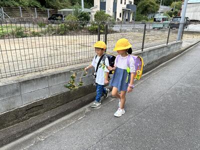 1年生は校舎近くに咲いたキンモクセイの花を手に持ちながらの下校でした。本当にいい香りです。