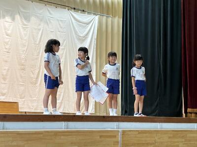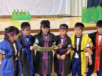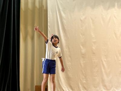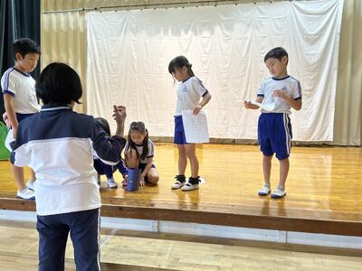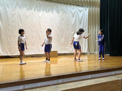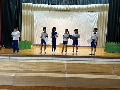 1年生は学習発表会の練習をしました。セリフを覚えて、演技をしてと忙しいですが、頑張っています。