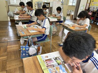 2年生は今日も「お手紙」の読み取りを行いました。がまくんやかえるくんの気持ちを考えながら、読み取ることができました。