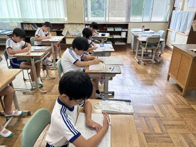 5年生では、本日、単元テストを実施しました。一問一問真剣に問題に取り組む姿に頼もしさを感じます。がんばった成果があらわれることを願います。