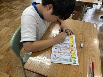 5年生は漢字の書き順の確認をしました。正しい書き順をしっかり覚えましょう。