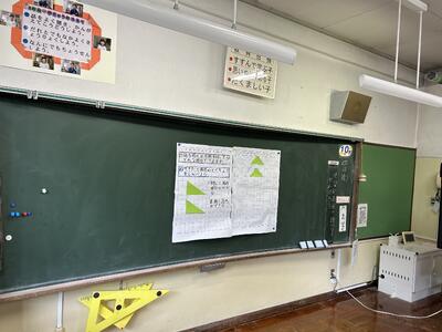 6年生は算数で拡大図と縮小図をかきました。コンパスを上手に使ってかくことができました。