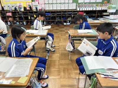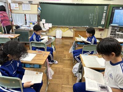 6年生は宮沢賢治の世界観を学習しています。今日はペアで音読をしました。