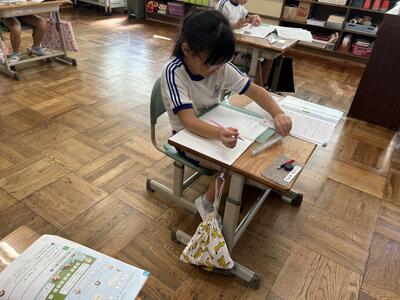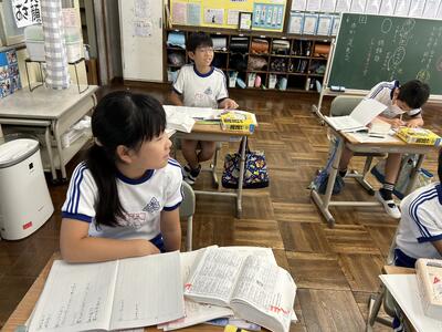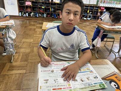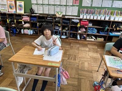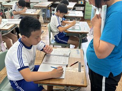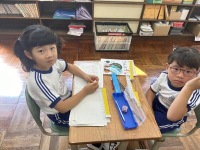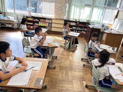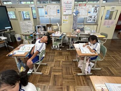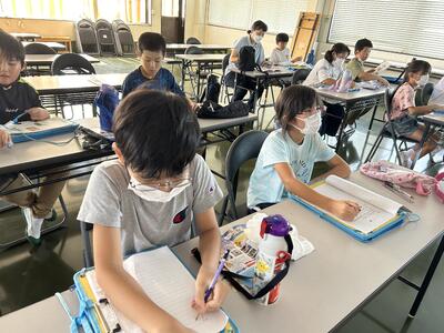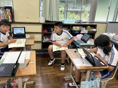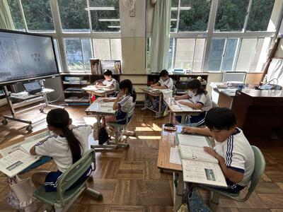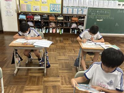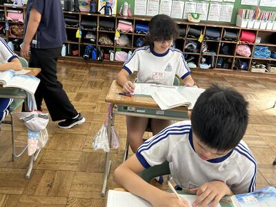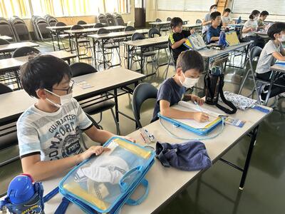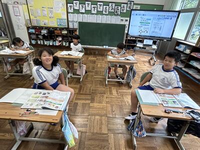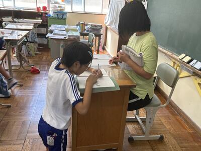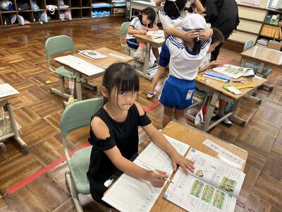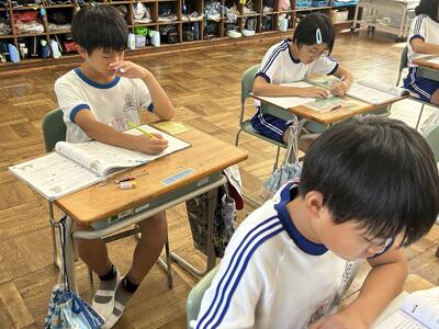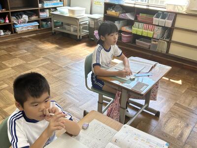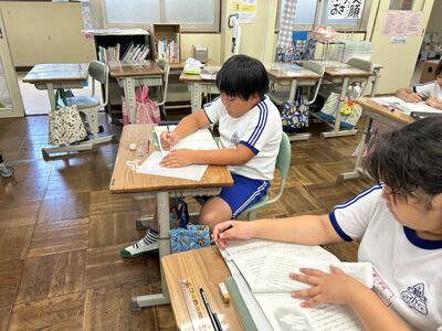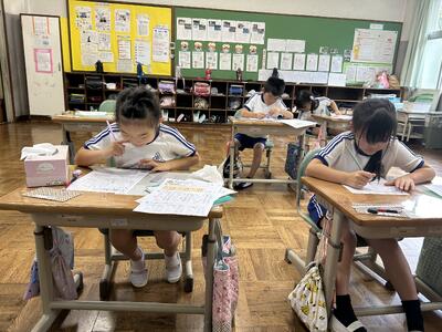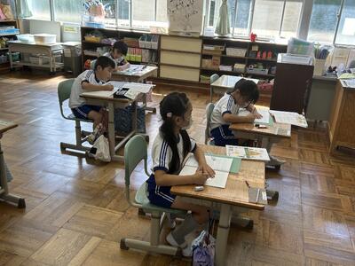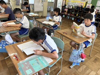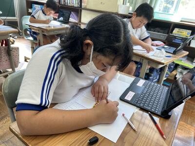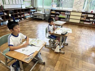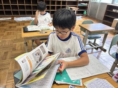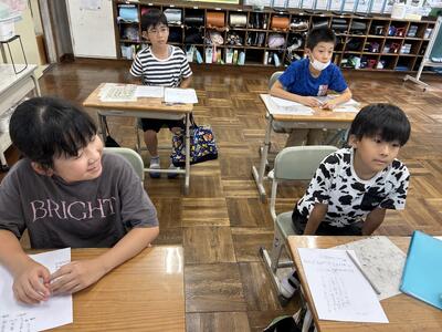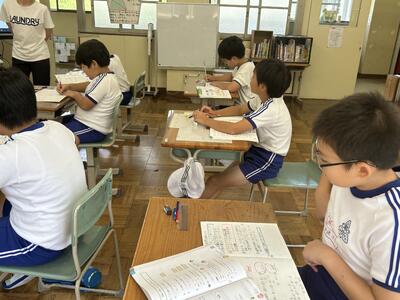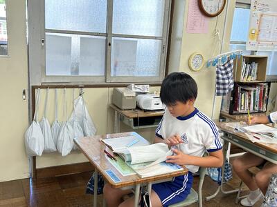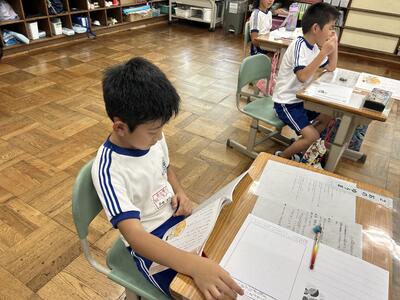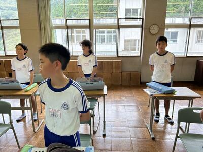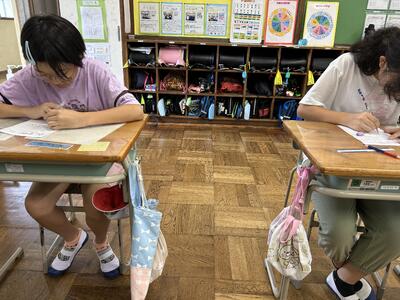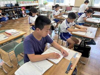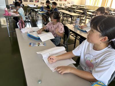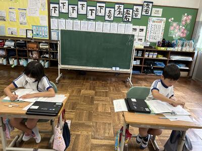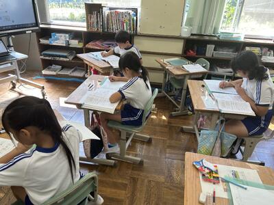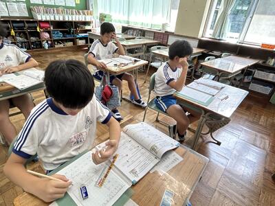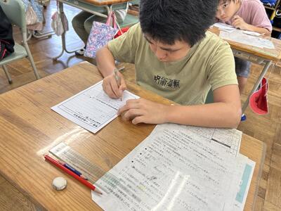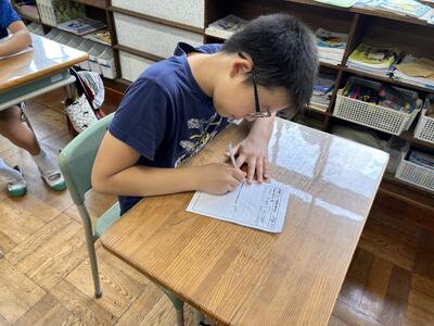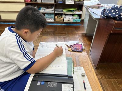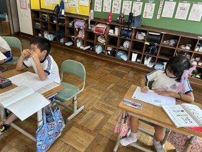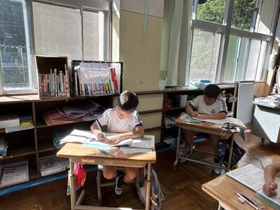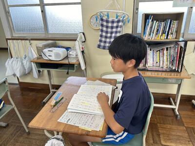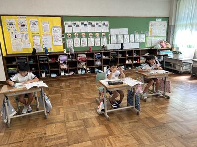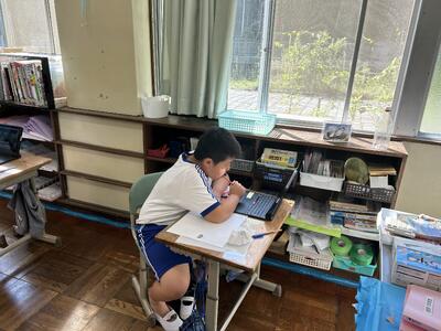 学校に残って学習した1・2年生、5・6年生は暑さに負けず、頑張りました。