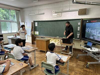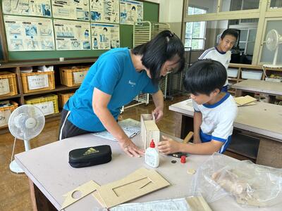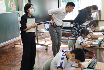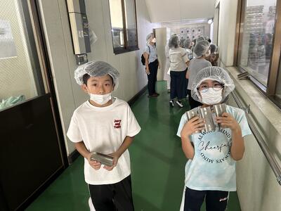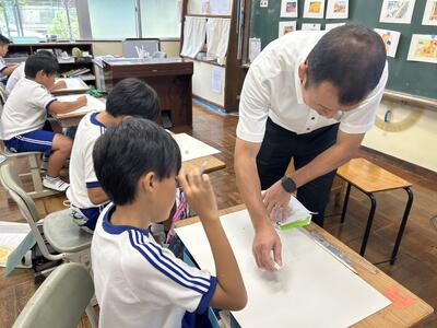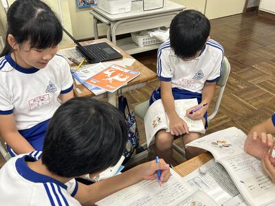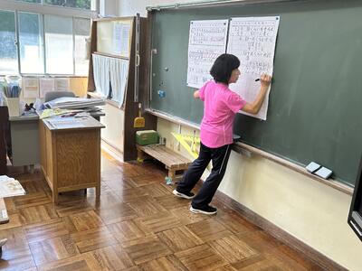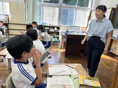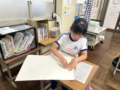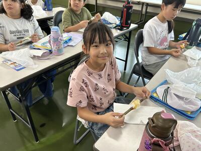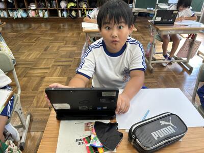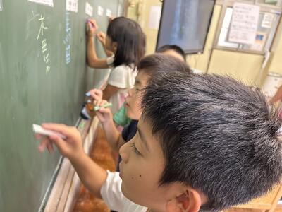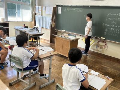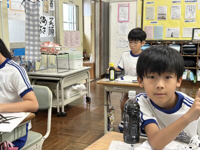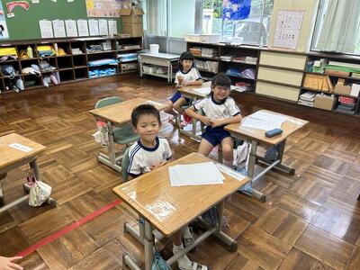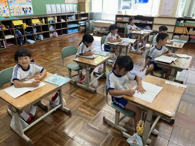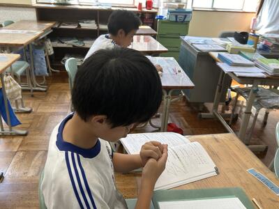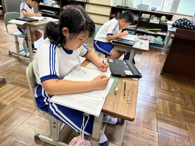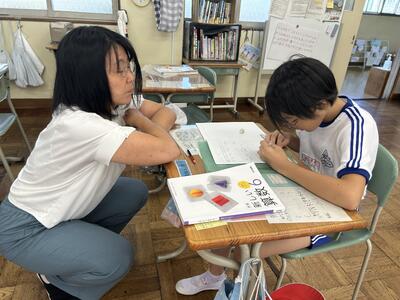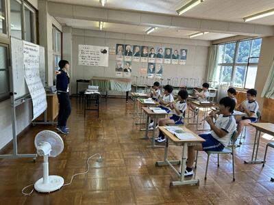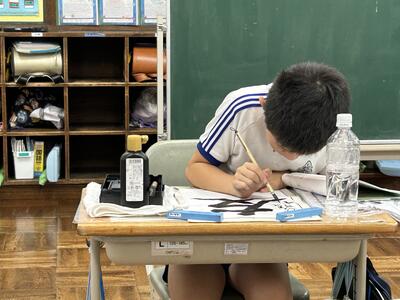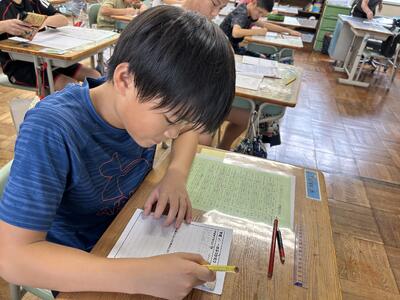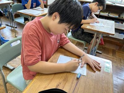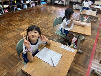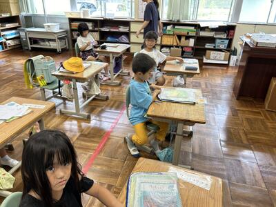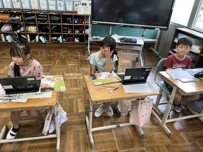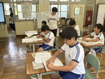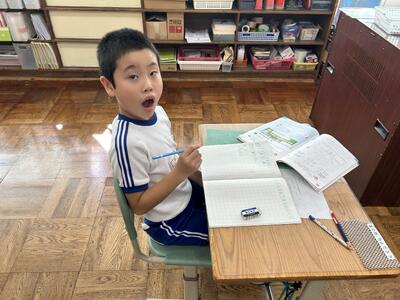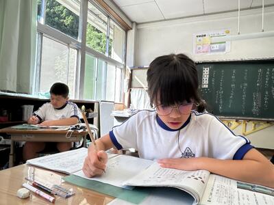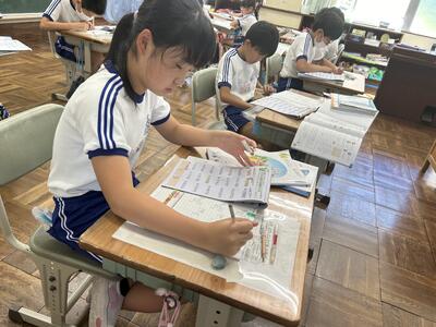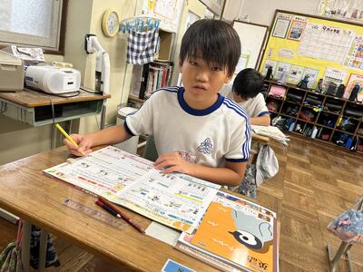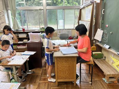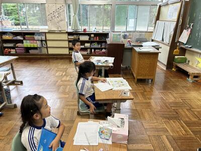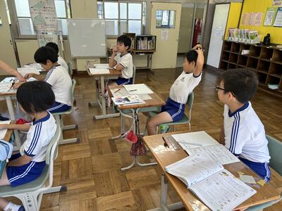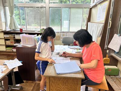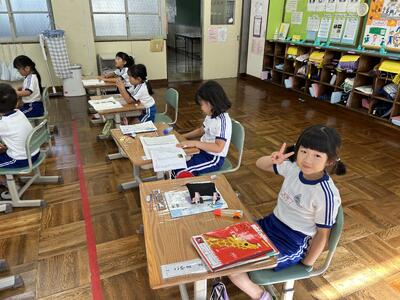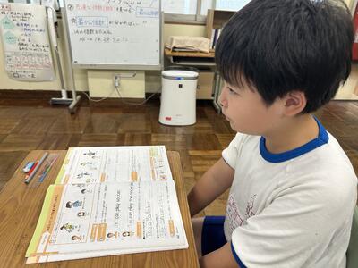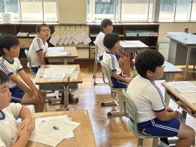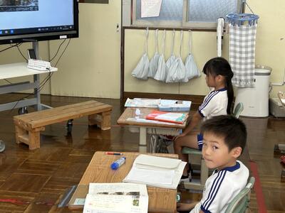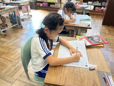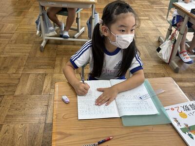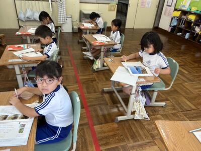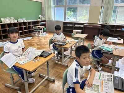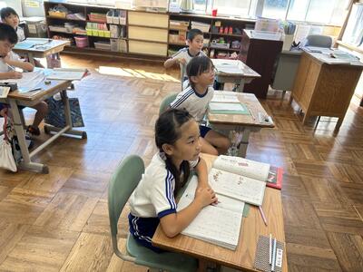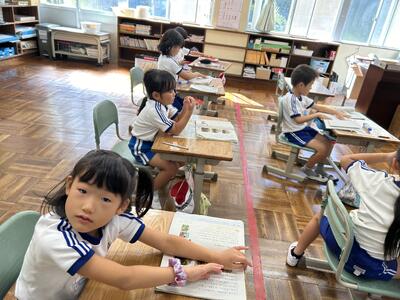 学校に残って学習した1・2年生、5・6年生は暑さに負けず、頑張りました。