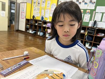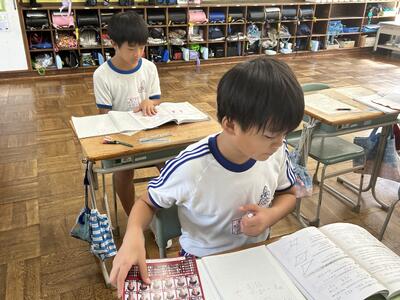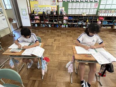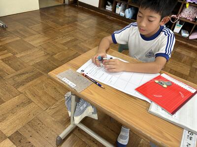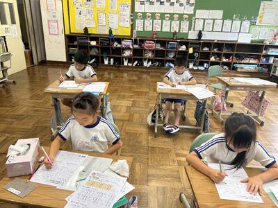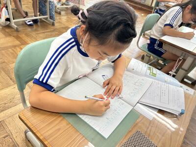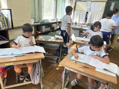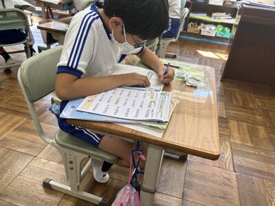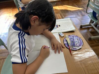 1年生はカタカナの学習が始まりました。集中して書いています。