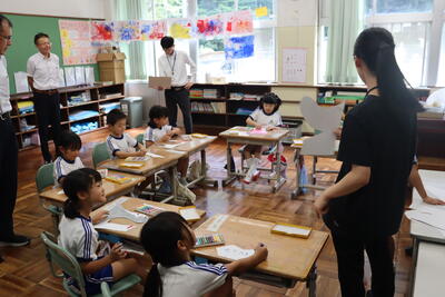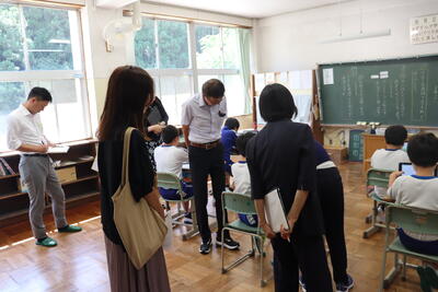 本日は、いわき教育事務所の訪問があり、大竹所長と田中次長のお二人に授業を参観していただきました。そしてお二人の先生に安心できる雰囲気で授業が行われているとお褒めの言葉をいただきました。先生方、お忙しい中、綴小学校にお越しいただきありがとうございました。