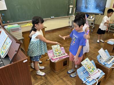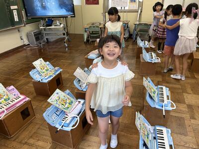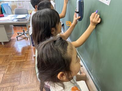 今日の授業の様子です。今日も歌って、踊って、そして真剣に学習することができました。