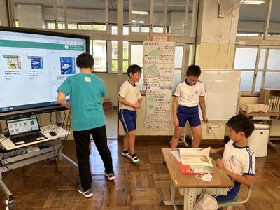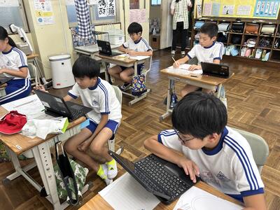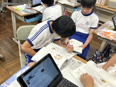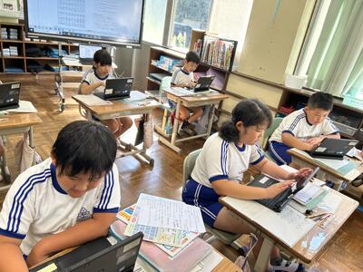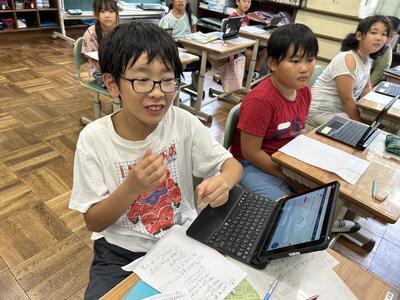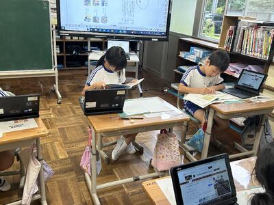 ジメジメした陽気の1日でしたが仲良く子どもたちは生活しました。たくさんの学年でタブレットを上手に使って学習しています。