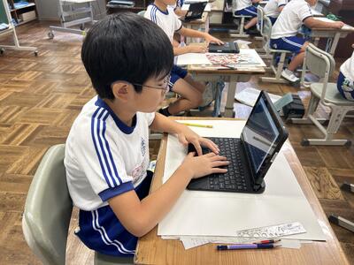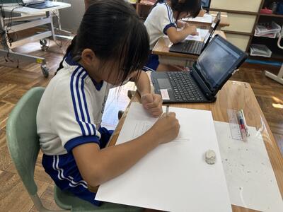 午後、3・4年生はタブレットを持って、スケッチするための写真を撮りに出かけました。いつも歩いている通学路ですが、詳しく見てみると新しい発見が…。スケッチの完成が楽しみです。
