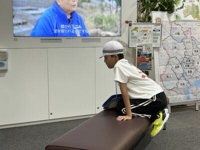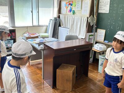 校長室に1年生が柔軟体操できますから、見てくださいと来てくれました。体の柔らかさにびっくり。