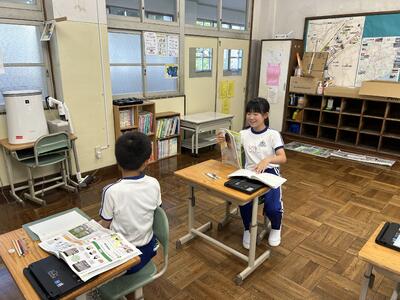 2年生は「お手紙」の音読を頑張りました。役を決めて、それぞれの役になりきっての音読でした。