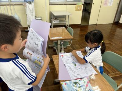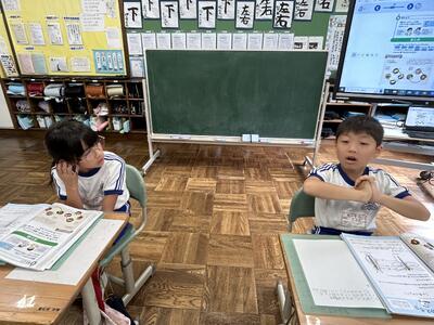 1年生はペア学習をしました。友だちと一緒に学ぶのは楽しいようです。