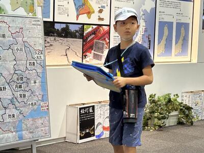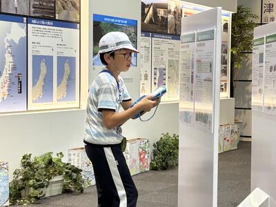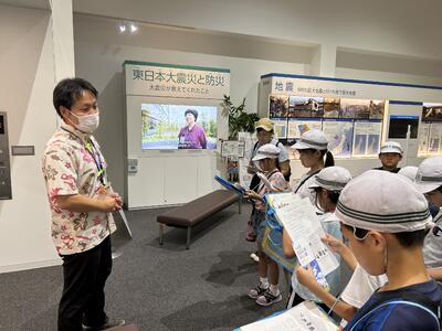 その後、三崎公園でお弁当を食べ、いわき震災伝承みらい館へ向かいました。いわき震災伝承みらい館では震災の比の津波の映像を見ました。また防災についても学習しました。