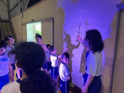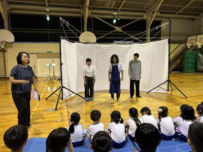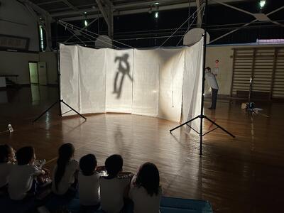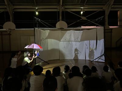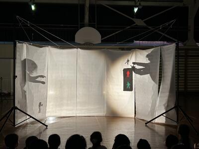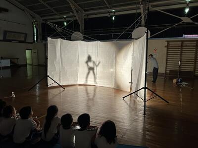 今日はお出かけアリオスということで、演劇ワークショップが行われました。ワークショップでは影絵を全校生で楽しみ、そして演じました。2時間があっという間に過ぎ、みんな影絵のとりこになりました。演じてくださった川口智子さんをはじめとする皆さん、そしてアリオスの皆さん、大変ありがとうございました。