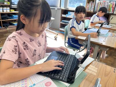 3連休明けですが、綴の子どもたちは真剣に元気よく学習しました。今日は欠席なしです。とてもうれしいです。3・4年生はタブレットを使って、ローマ字の学習をしました。タイピングも上手になりました。