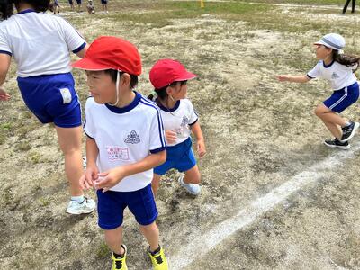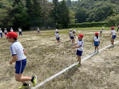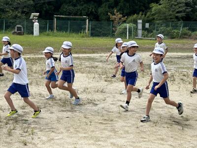 大休憩時は保健委員会主催で全校生が楽しむことのできる運動を行いました。全校生が校庭を駆け回りました。
