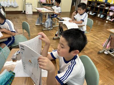 1年生は「海の生き物」という説明文を学習しています。読み取りの「型」がしっかりと身につくといいですね。