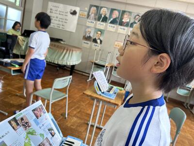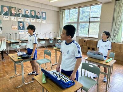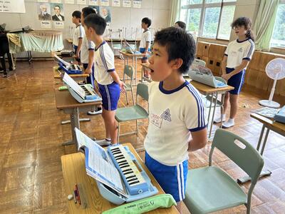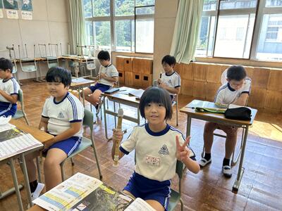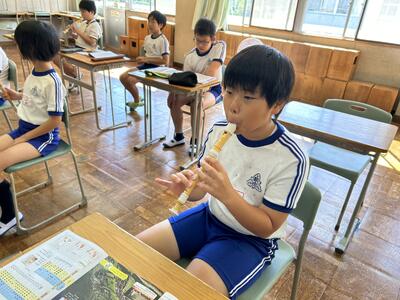 授業の様子です。今日も子どもたちは頑張りました。5年生はリコーダーの練習に熱心に取り組むことができました。楽譜を見ながら頑張りました。