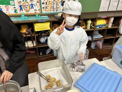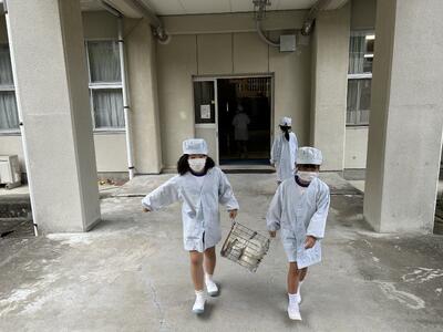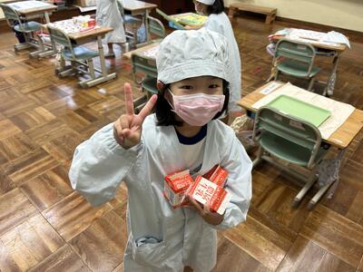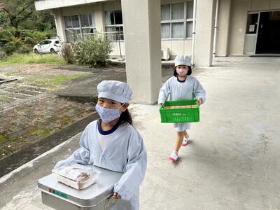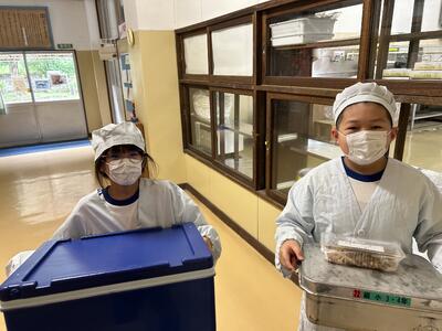 1年生が上手に協力して、給食の配膳を行っています。給食を配膳する姿もとてもかわいいです。