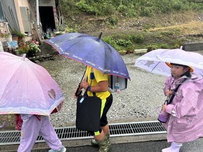 今日は雨の中での登校でしたが、安全に登校することができました。登校班の班長さん、毎朝、下級生の面倒を見ながら登校してくれて、ありがとうございます。