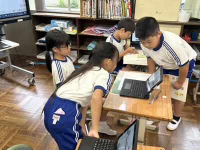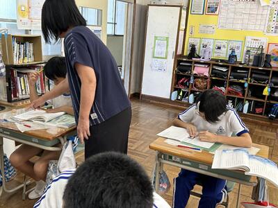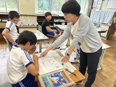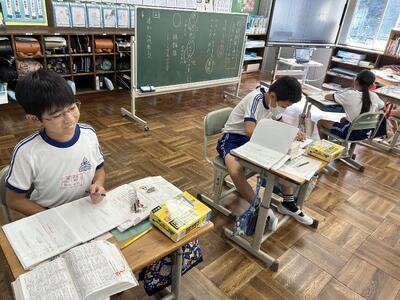 綴の子どもたち、今日も仲良く真剣に学習しました。小規模校の利点をいかし、個別指導もしっかりできていました。グループでの学習も見られました。