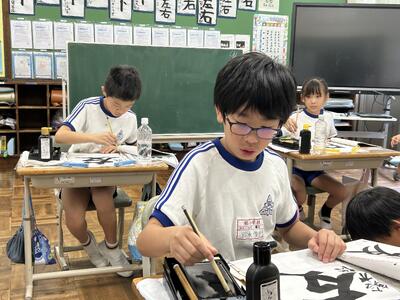 4年生は毛筆で「友」という字を書きました。集中してできました。