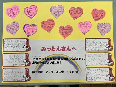 19日(水)に食育指導と調理体験をさせていただいた「カフェみっとん」様へのお礼のメッセージができあがりました。近日中にお届けし、感謝の気持ちを伝えたいと思います。