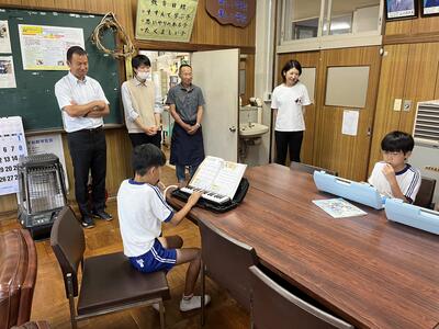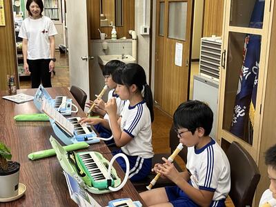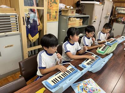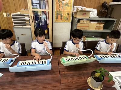今日は4年生が校長室へ来て、演奏会を開いてくれました。ラバーズ・コンチェルトとエーデルワイスの2曲。すてきな音色でした。職員室の先生方も演奏を聴き、感動していました。