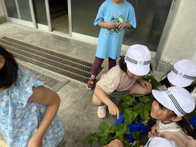 「アサガオのつるが伸びてきました」と朝、1年生の女の子が教えてくれました。すてきな笑顔で教えてくれました。清々しい気持ちになりました。