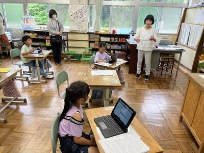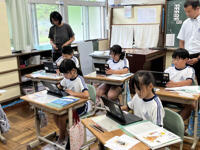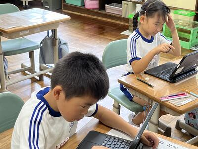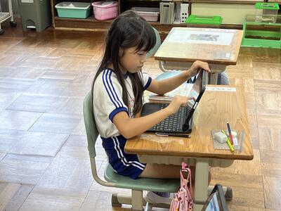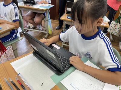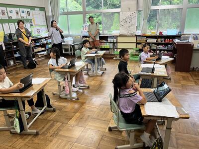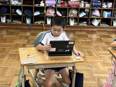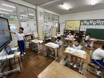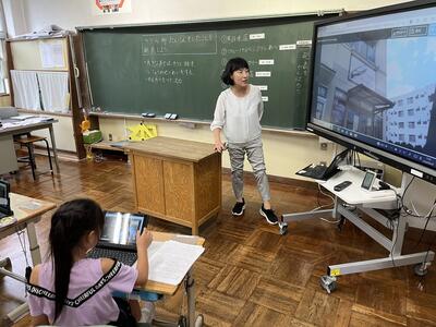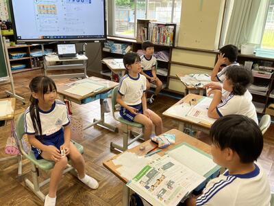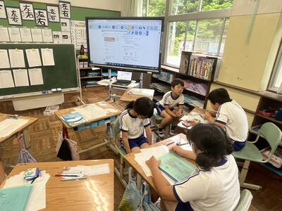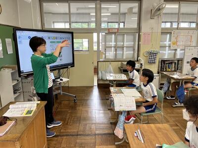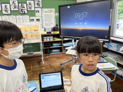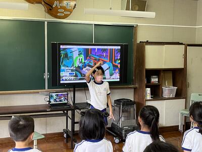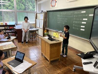 2年生は町たんけんの発表を行いました。タブレットでスライドを作成し、それを使いながら上手に発表することができました。