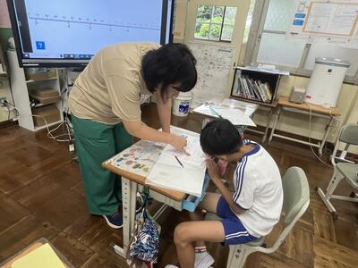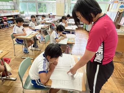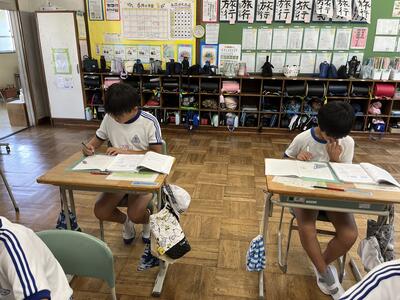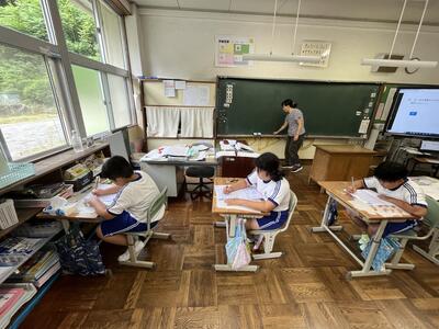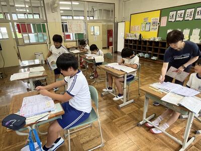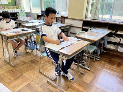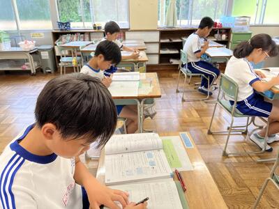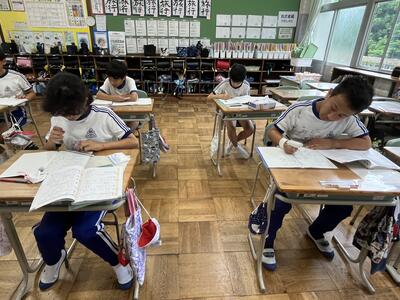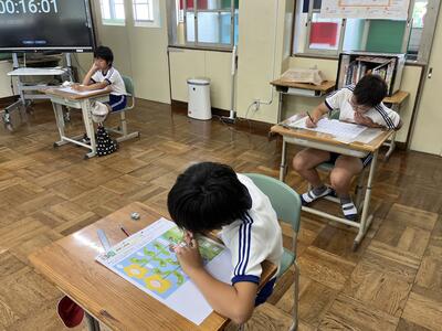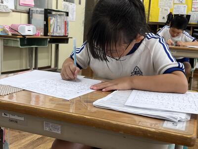 さて今日は週の始まりの月曜日。休み明けでしたが、子どもたちは元気に学習しました。ムシムシする陽気にも負けず頑張りました。単元テストを行う学年が多かったのですが、問題にあきらめずに挑みました。