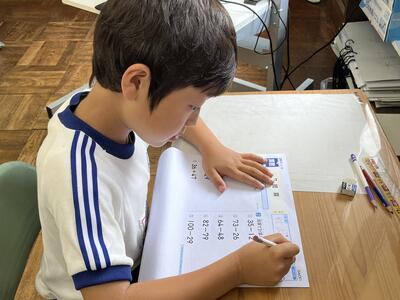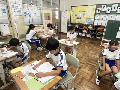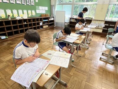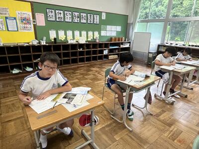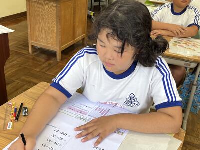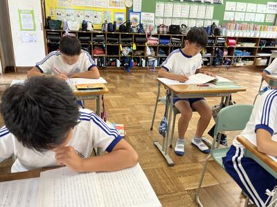 5年生は単元テスト。最後まであきらめずに頑張っていました。