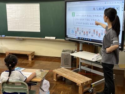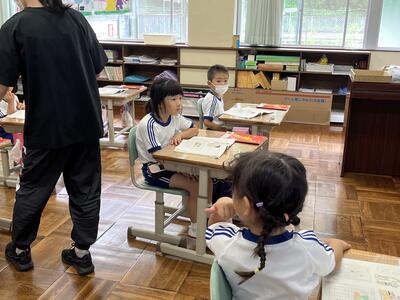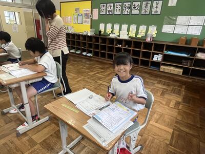 1年生も落ち着いてしっかりと学習していました。今日は小さい「ゆ」を学びました。