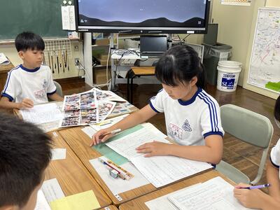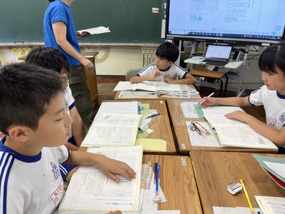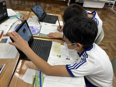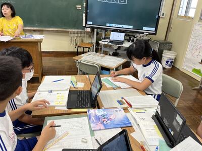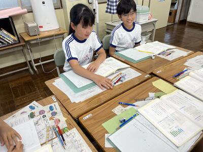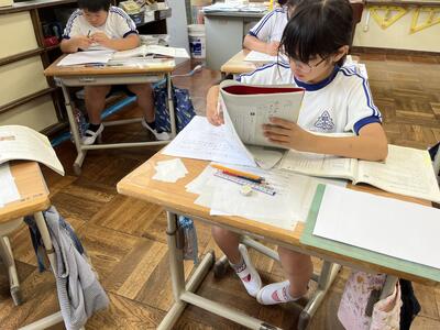 今日の1時間目の様子です。4年生はインタビューのまとめとして、新聞の作成をしていました。