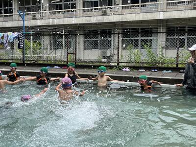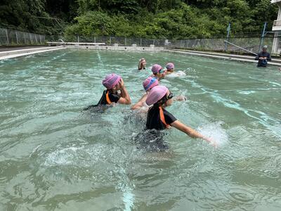 3・4年生はプールでの学習を満喫しました。泳ぎも成長のあとが見られます。