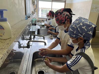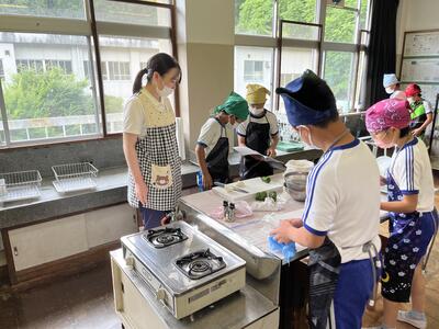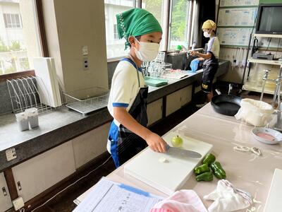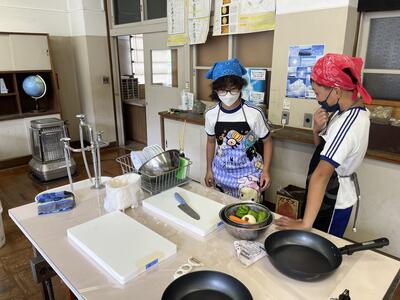 今日、5・6年生は調理実習に取り組みました。5年生の実習の目的は野菜を煮る、6年生は野菜を炒めるということでした。みんなで協力して作りました。自分たちで作った料理はたいへん美味しかったようです。お疲れ様でした。