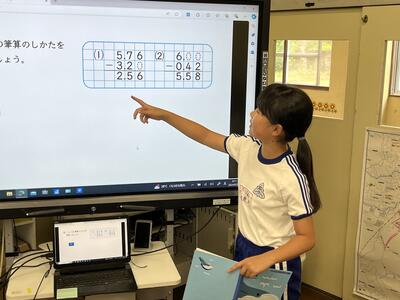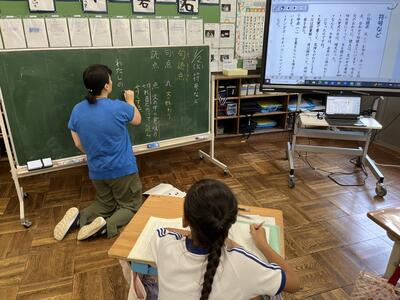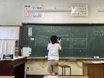 授業後、タブレットで黒板に書かれたことを撮る子どもを発見。こうすれば復習に活用できますね。