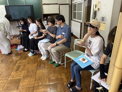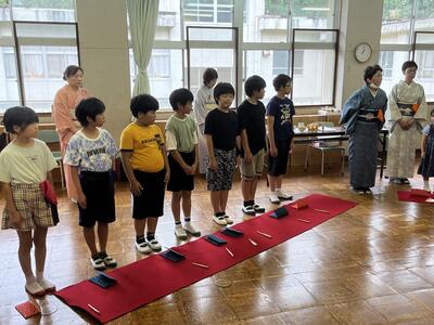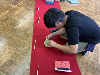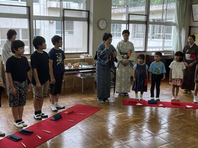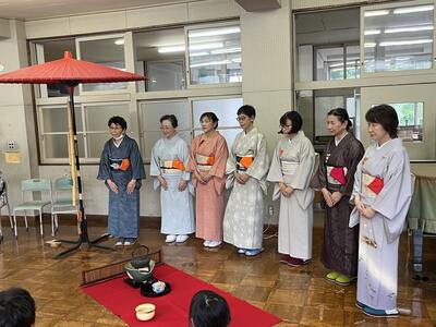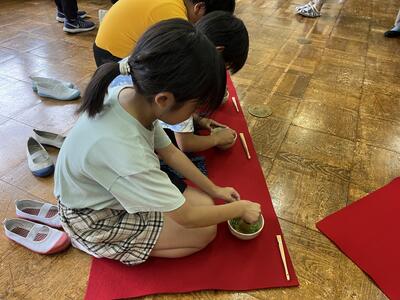 1年生と5年生は茶道体験を行いました。茶道の先生方のおかげで音楽室が茶室になりました。保護者の方々にも点てたお茶を振る舞いました。礼の作法等、学びがたくさんあった授業でした。