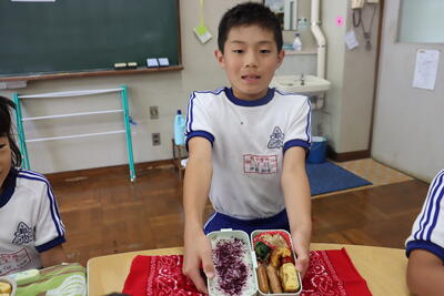 そして今日はふれあい弁当ディでした。自分で調理したり、詰めたお弁当を縦割り班ごとに美味しく食べました。保護者の皆様、ご協力ありがとうございました。