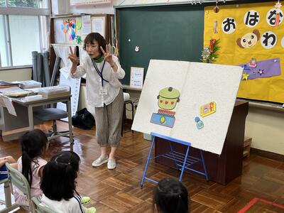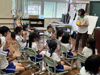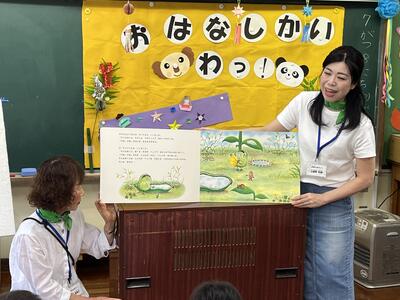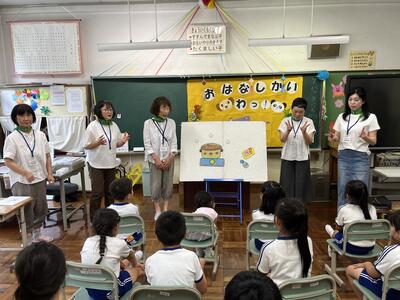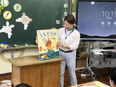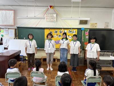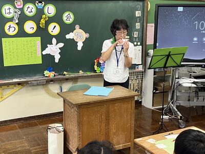 今日は、おはなし会「わっ!」の皆さんに来校していただき、1~4年生に読み聞かせをしていただきました。千葉さんをはじめとする「わっ!」の皆さんが読み聞かせを始めると、あっという間に本の世界に引き込まれました。途中、オカリナの演奏もあり、とても楽しい会でした。「わっ!」の皆さん、本当にありがとうございました。