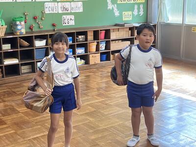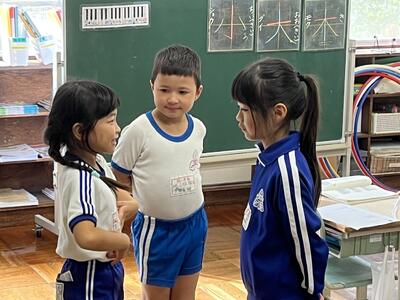 絶好の天候の下、1年生は校庭で虫取りを行いました。バッタ、とんぼ、ちょうちょを捕まえようと校庭を元気に走り回りました。途中でせみの抜け殻も見つけて大喜びの子どももいました。綴小学校は自然の宝庫です。