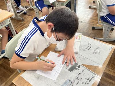 1年生は漢字の書き順を学習しました。正しい書き順をしっかり覚えることができました。とても頑張りました。