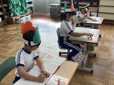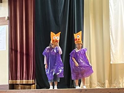 2年生の劇が完成に近づいてきました。それぞれの役の衣装を着て練習しました。セリフも衣装もバッチリです。発表までもう少し。頑張りましょう。