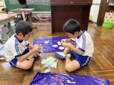 5・6年生の手際のよい作業です。協力して丁寧に42名一人一人の名前を貼り付けました。