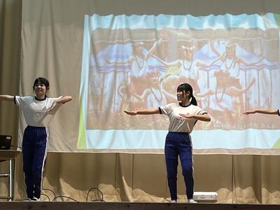 体育館練習の様子です。本番に向けて、入念にチェックしました。