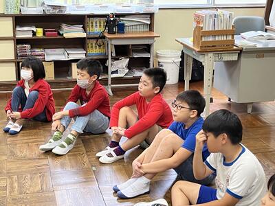 学習発表会の練習の様子です。一生懸命です。3・4年生は台本の読み合わせをしました。