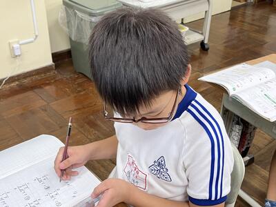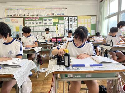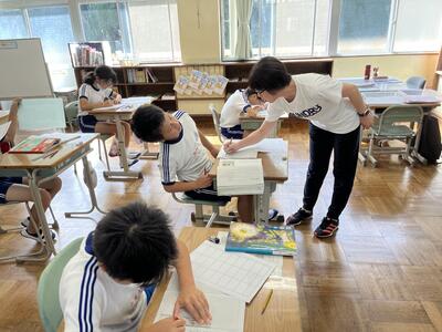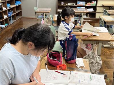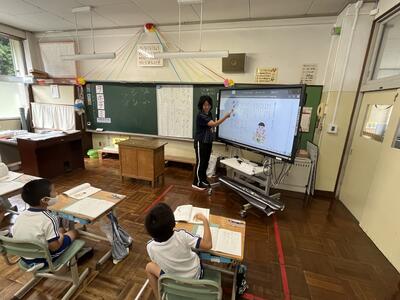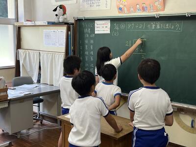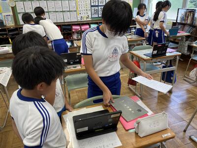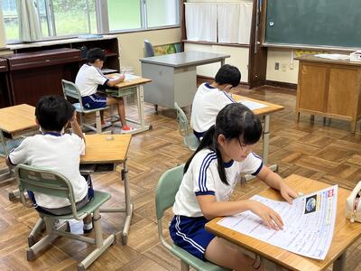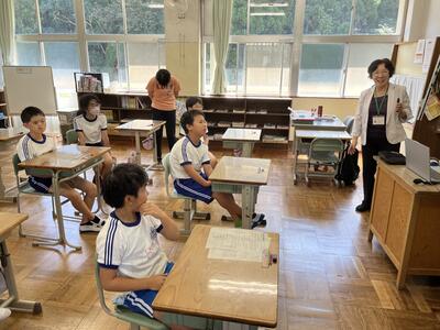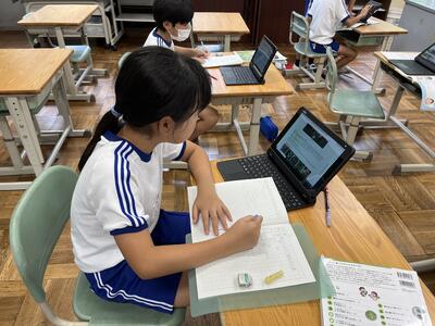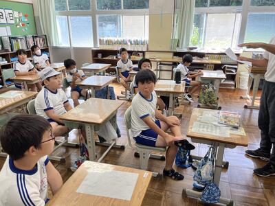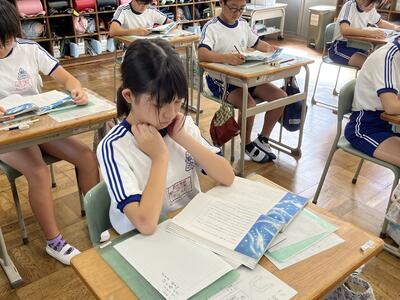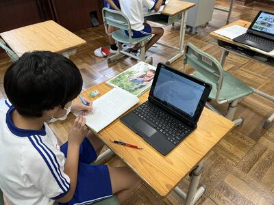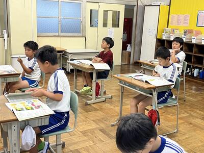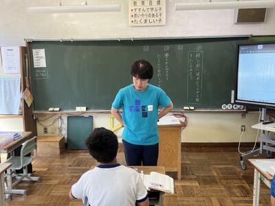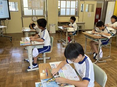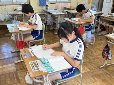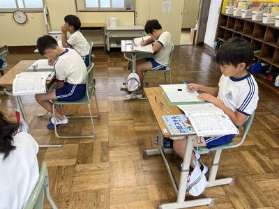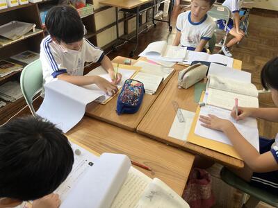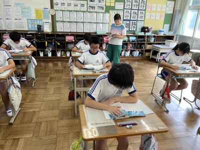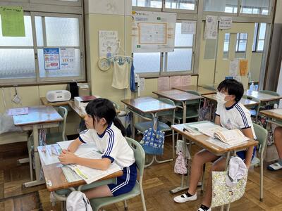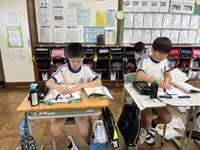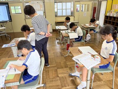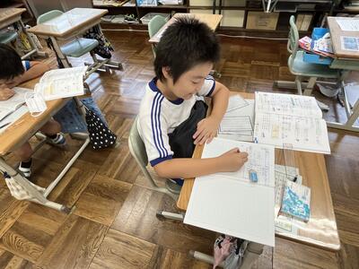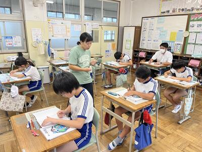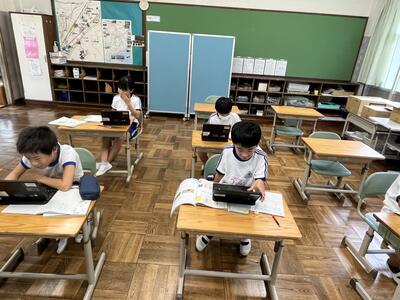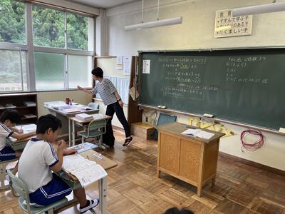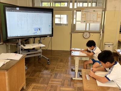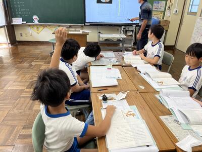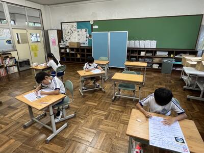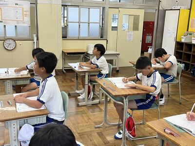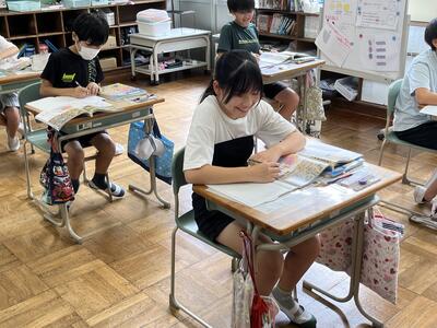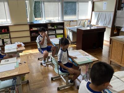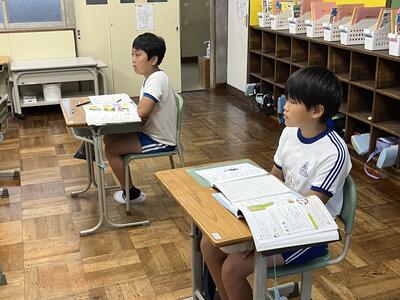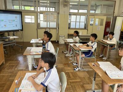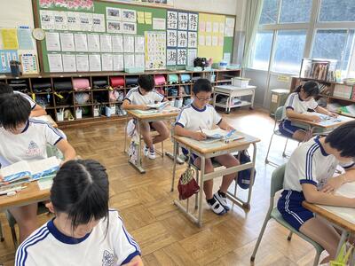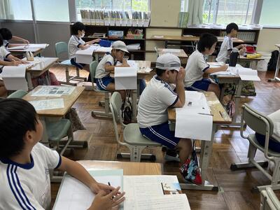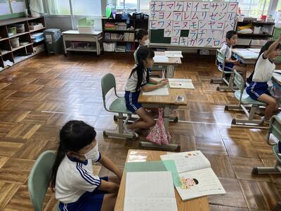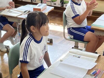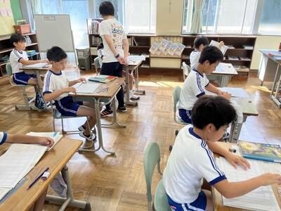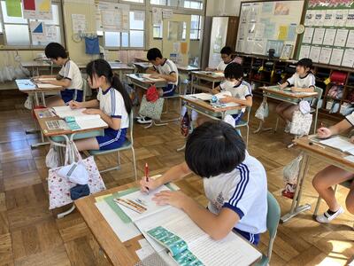 木曜日の授業、蒸し暑い中ですが、一生懸命でした。頑張る綴小学校の児童です。