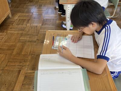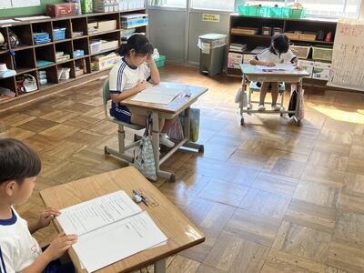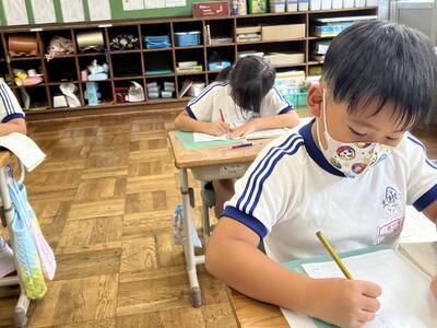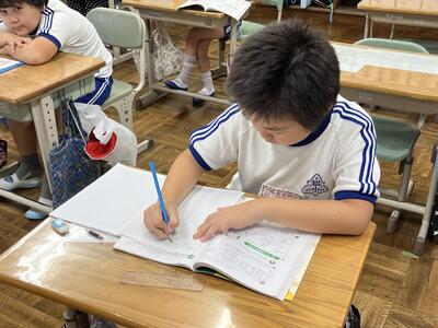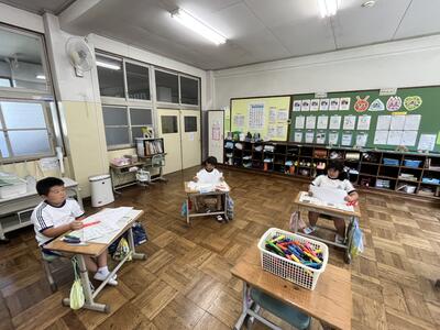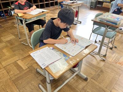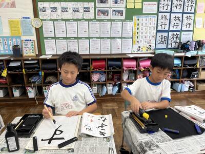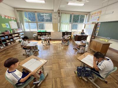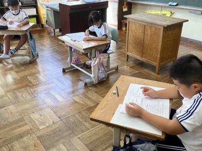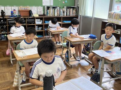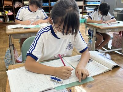 授業にしっかり取り組む、児童たちです。今日もがんばりました。1年生も字がたいへん上手になりました。