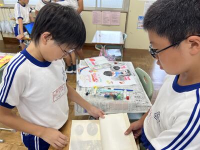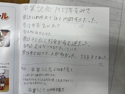10月の70周年記念学習発表会に向けての活動が始まりました。総合の時間を活用して、5・6年生は古い卒業アルバムを見ながら、昔の綴小学校の様子を調べました。